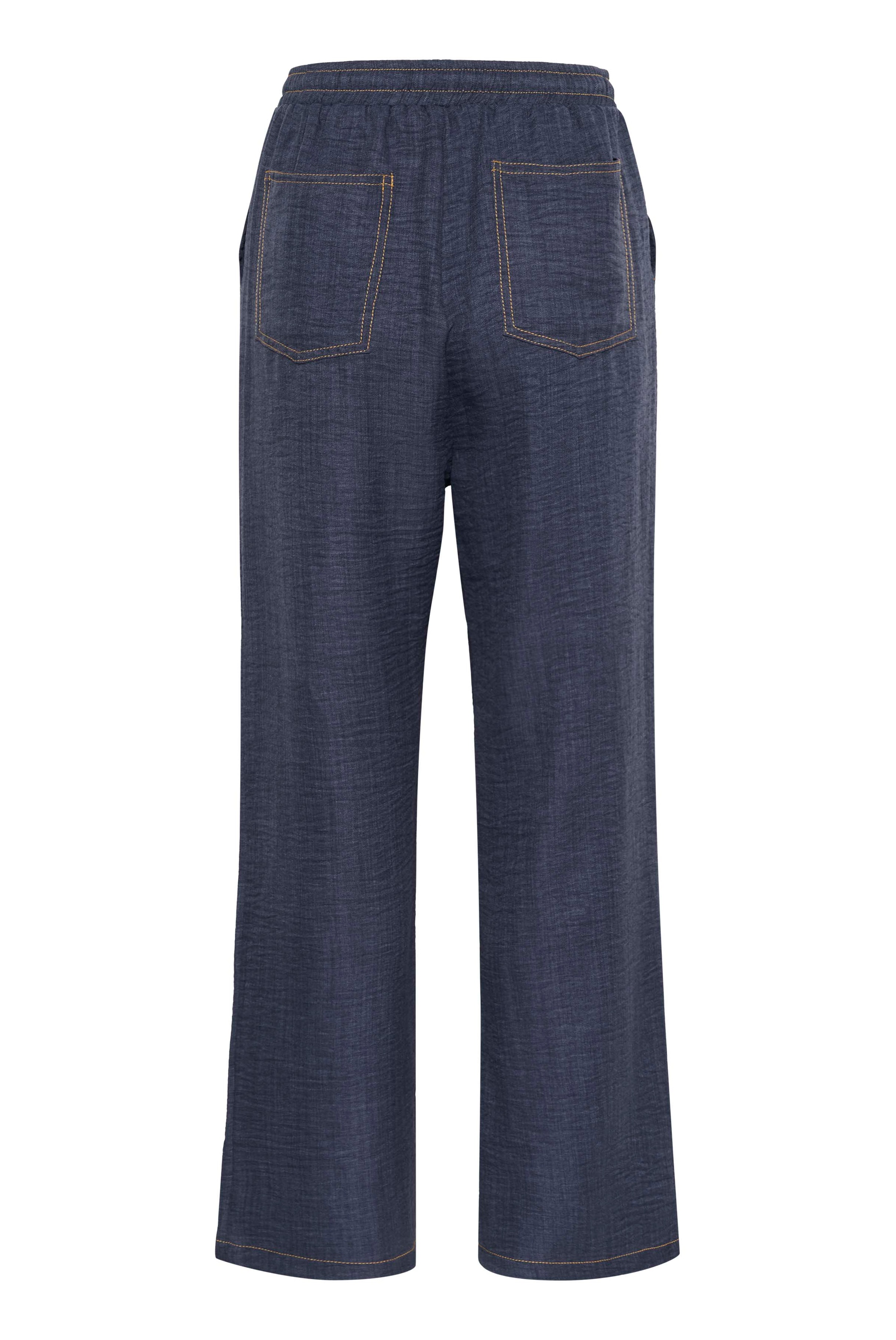 Weit geschnittene Hose mit entspannter Silhouette, Kordelzugbund und dezent strukturierter Optik. Praktische Seitentaschen, volle Länge und klarer, moderner Look.